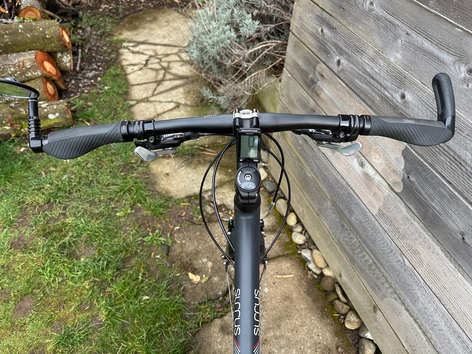 Body Geometry Targa gel grips lock on and help alleviate hand pain and tingling fingers, integrated bar ends for changing hand position included