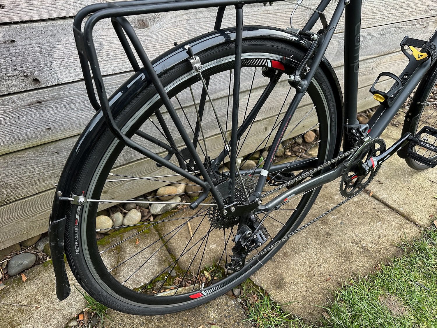 FACT carbon legs and alloy steerer fork with Zertz for responsive road feel and forgiving ride, with fender mounts and wide clearance for added versatility