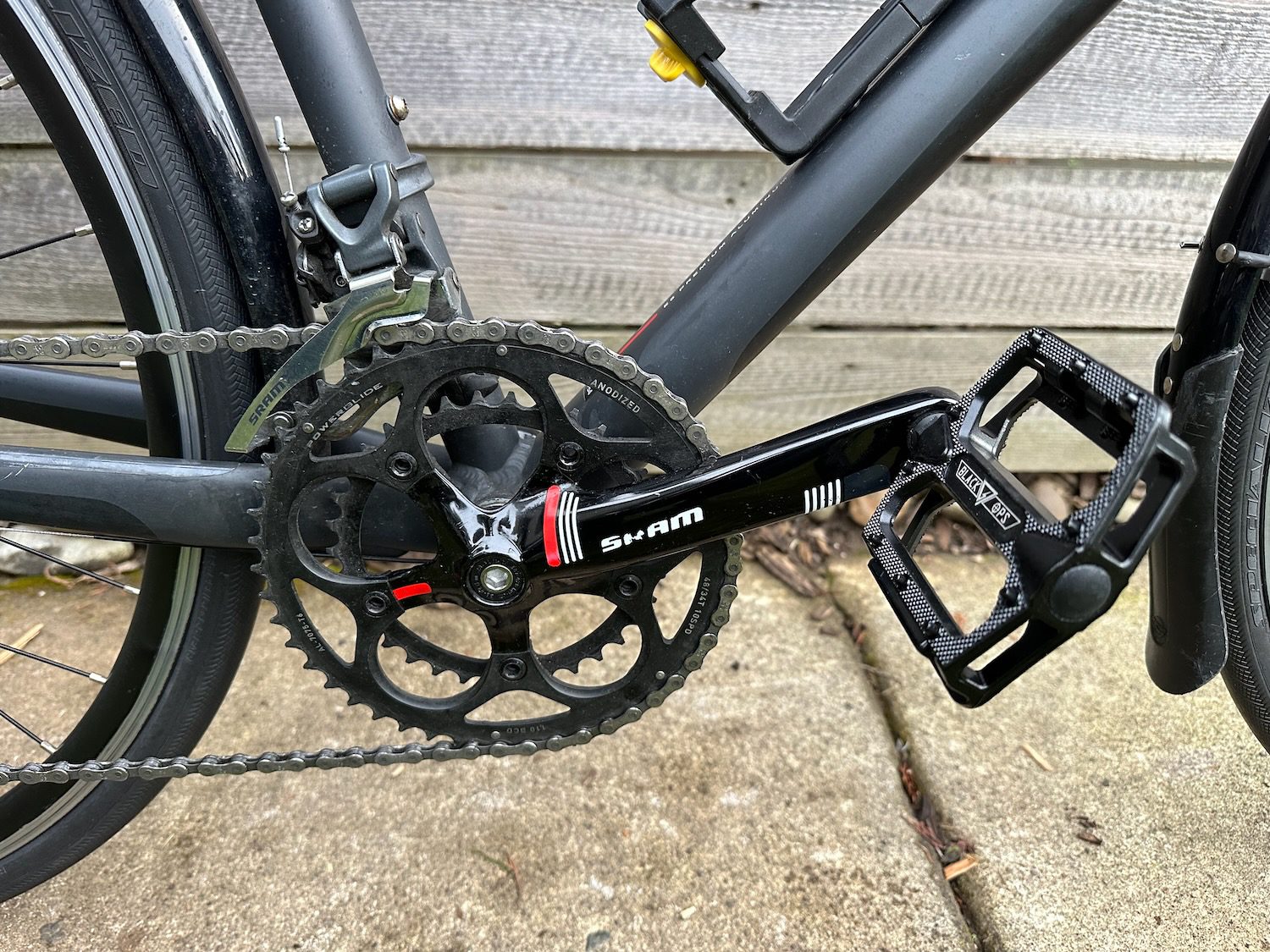FSA Omega 2×10 crankset with 48/34 rings for lightweight, wide-range gearing and spot-on shifting every time, pairs with 11-36 SRAM cassette
